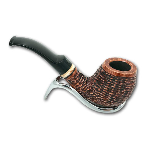 Die Besonderheit bei dieser dänischen Bent Variante liegt im dezent nach vorne geneigtem Kopf sowie des halben Sattels im Mundstück. Eine Besonderheit, die selten zu finden ist und gerade hieraus entsteht die wunderbar schwungvolle Linie dieser Pfeife. Bei mittleren Füllvolumen eignet sie sich für nahezu alle Schnittarten des Tabaks. Auch dieses Modell ist für 9 mm Filter geeignet und hat ein schwarzes Kunstharz Mundstück.