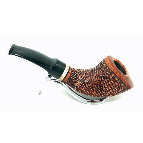 Jirsa No, 132 Brown Rustic ist eine schwungvoll wie ein Horn gebogene Pfeife mit dicker Wandung und mittlerem Füllvolumen, Ihr beiseitig kantig beschliffener Kopf schmiegt sich wunderbar in die Hand und geht mit einer Stufe in den kurzen runden Holm über,